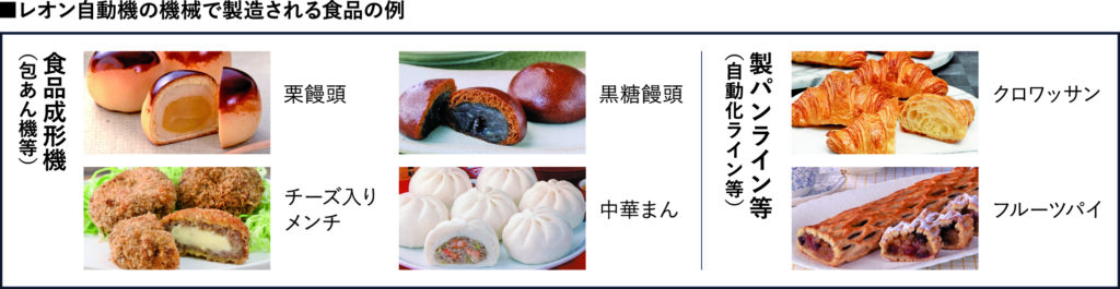 同社は、饅頭のあんを皮で包む「自動包あん機」を世界で初めて開発した。現在、「包あん機」などの食品成形機と、パン生地をシート状に成形してクロワッサンやペストリーなどを作る「製パンライン」の大きく2分野の機械を提供する。また、製パンラインを使った工場を米国で運営し、自ら食品製造も行っている。