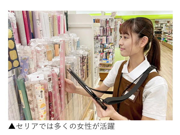 同社では従業員数565名のうち約75%が女性である。また、パートタイマー2万6000名以上のうち90%以上、4~5店舗を統括する「エリア店長」430名のうち80%以上、エリア店長のサポート役として約50店舗を担当する「エリアサポートマネージャー」46名のうち70%以上を女性が占めている。