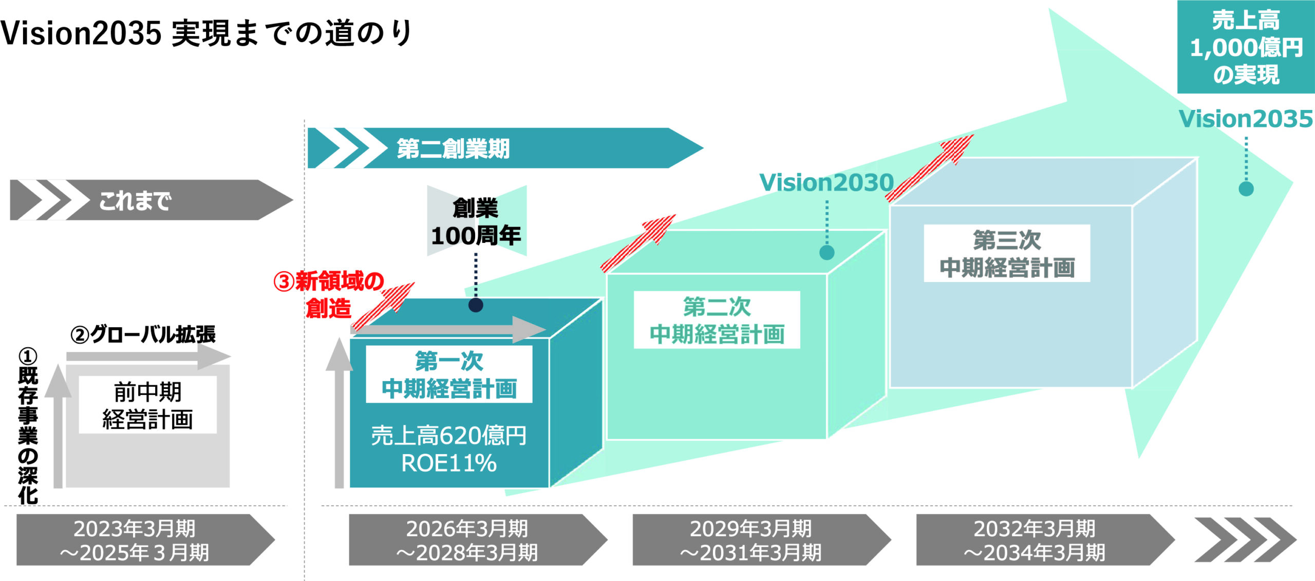 そして、この中期経営計 画期間を「第二創業期」と位置づけ、大胆な変革へと踏み出します。