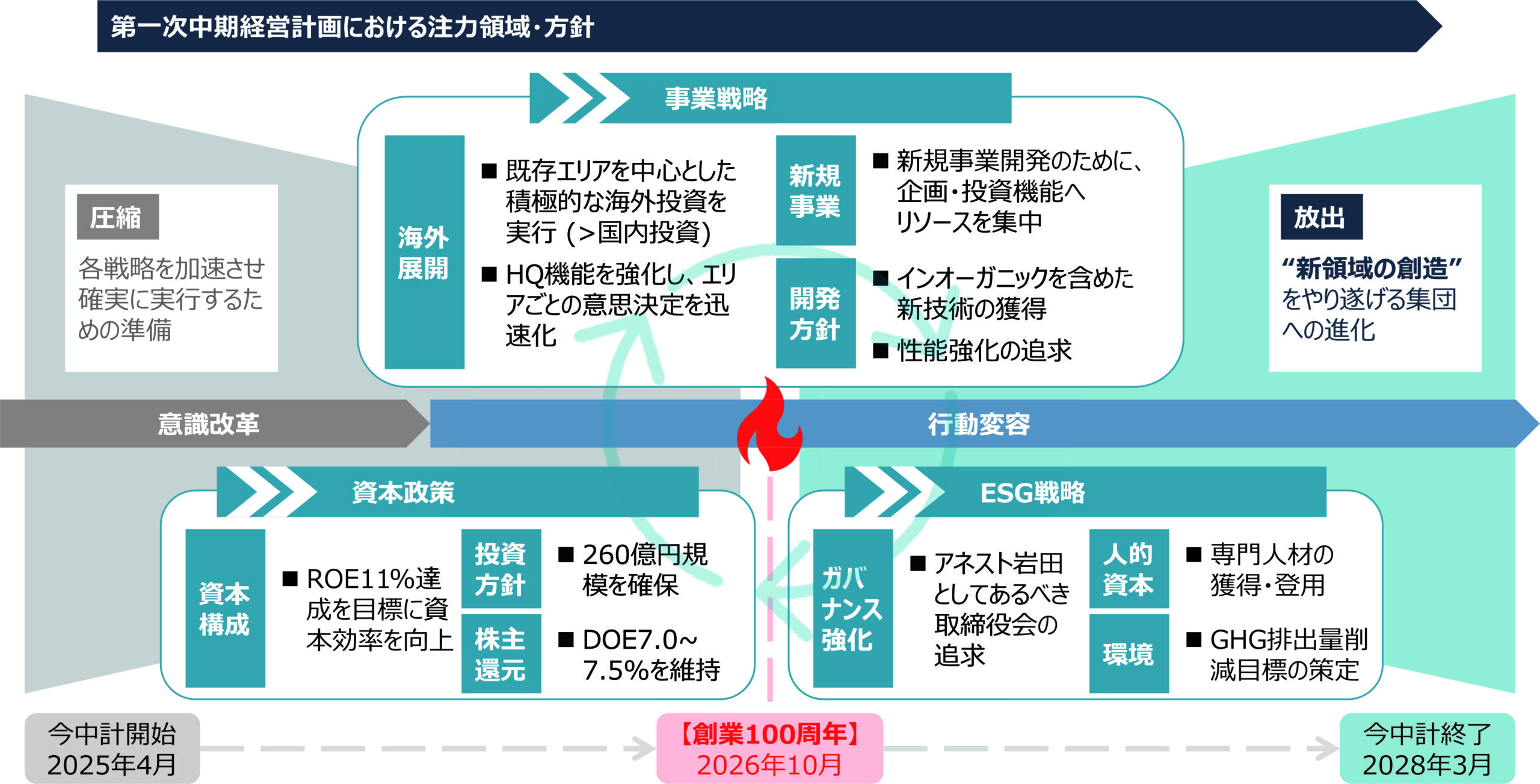 今回の中期計画は、経済的な成長だけでなく、「企業文化・人材の変革」にも重点を置いている点が特徴だ。