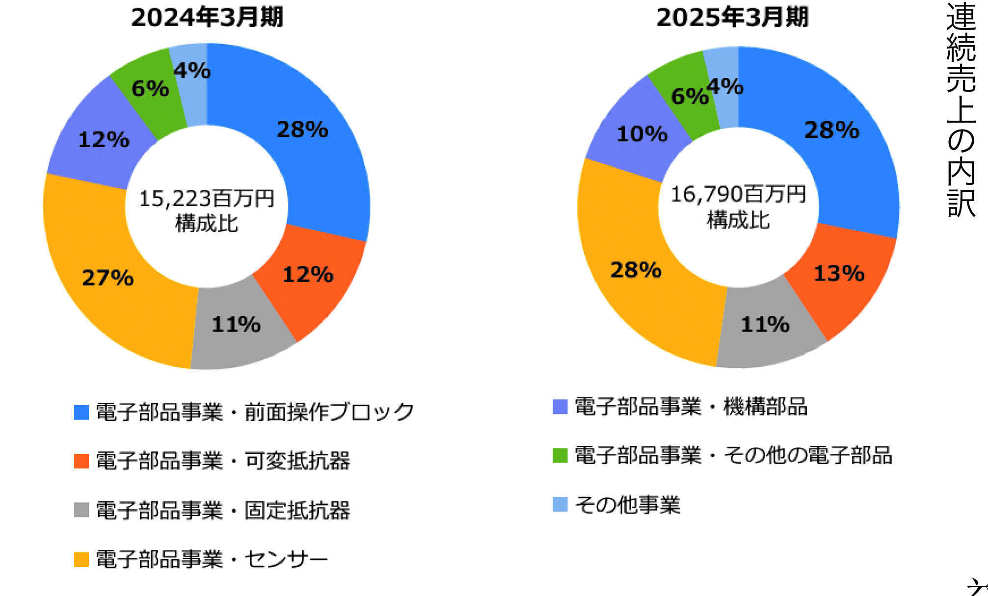 主力の電子部品セグメントでは、AV機器や自動車関連製品の需要が回復基調にあり、特に自動車電装品向けのHVAC向け等センサ部品の販売が堅調に推移した。加えて、海外向けの需要拡大も追い風となり、輸出関連の売上も好調に推移。さらに、同社は製造現場での自動化、省力化を積極的に進めており、従来よりも効率的な生産体制が構築されつつある。これが利益率の改善に寄与し、営業利益の大幅な増加につながった。