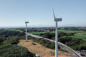 ▲神奈川県三浦市の宮川公園に設置されている同社の風車