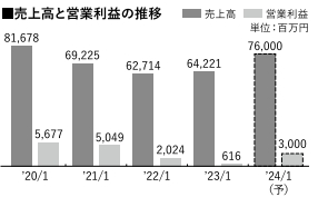24年1月期の連結業績予想は売上高が前期比18・3%増の760億円、営業利益は同386・4%増の30億円を見込む。