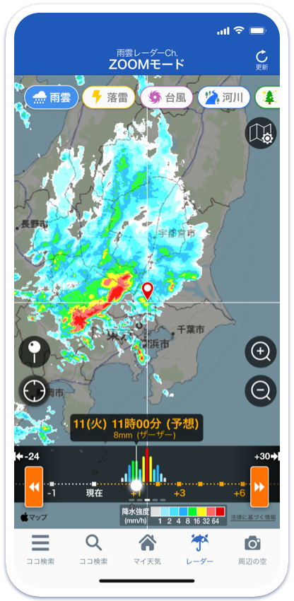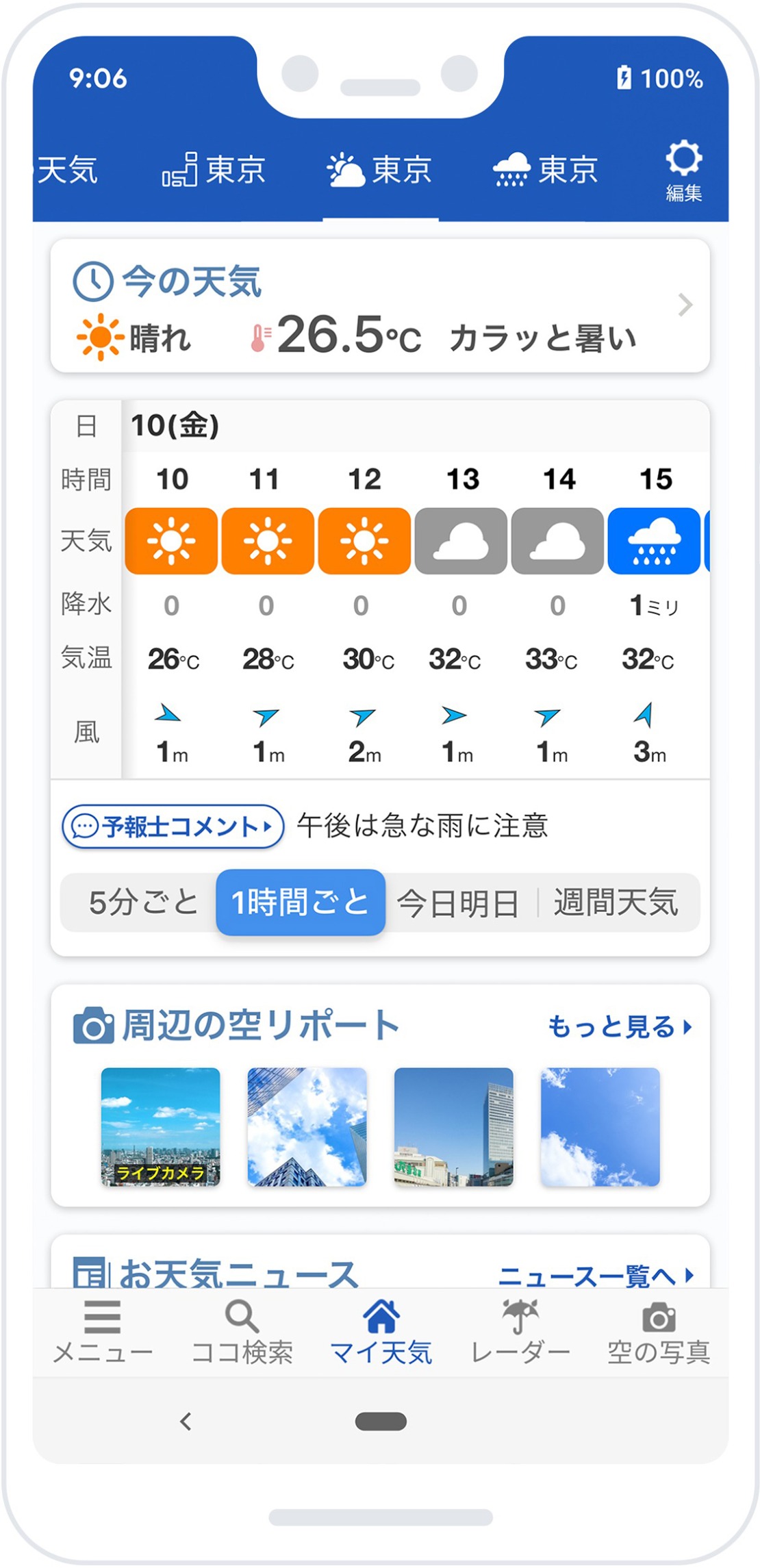 モバイル・インターネット気象事業のメインは、09年から開始したスマートフォンアプリ 「ウェザーニュース」だ。気象予報士による動画ニュースから花粉飛散・さくらの開花・ほたるの見頃・紅葉前線などの自然情報、スキー&スノボ・ゴルフ場・釣り場のピンポイント天気など、日々の生活から災害時まで、気象の枠を超えたコンテンツを提供。また一日平均18万通のサポーターから送られるウェザーリポートのプラットフォームともなっている。ダウンロード数は3500万を超える。