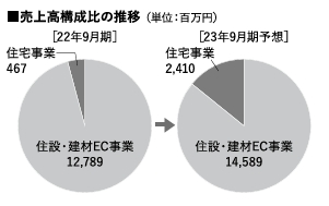 サンワカンパニーは、住宅設備機器・建築資材のファブレスメーカーで、ECで商品を直販している。2022年9月期の連結売上高は前期比17.7%増の132億5700万円、営業利益は同247.2%増の9億5500万円。コロナ禍で増えたリフォーム需要をWEB広告や既存顧客への購入促進策などによってうまく取り込み、成長している。2019年からの「9カ年計画」を推進し、住宅事業や海外事業も軌道に乗せて27年に営業利益100億円を目指している。