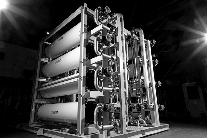 「超純水」とは、水中に混在する不純物を除去した水(純水)をさらに精製して純度を高めたもの。超純水で認められる不純物の混入濃度は、50メートルプールに耳かき0・1杯分の不純物もない程度の濃さだ。超純水は、半導体やFPD製造工程などの洗浄で使われる。少しでも不純物があれば回路のショートなど不具合につながるため、超純水による洗浄が不可欠だ。近年半導体は微細化と多層化が進み、製造プロセスが増加している。そのプロセスごとに洗浄が必要なことから、超純水の使用量も増えている。また、超純水は医薬品製造時の注射用水としても使用される。