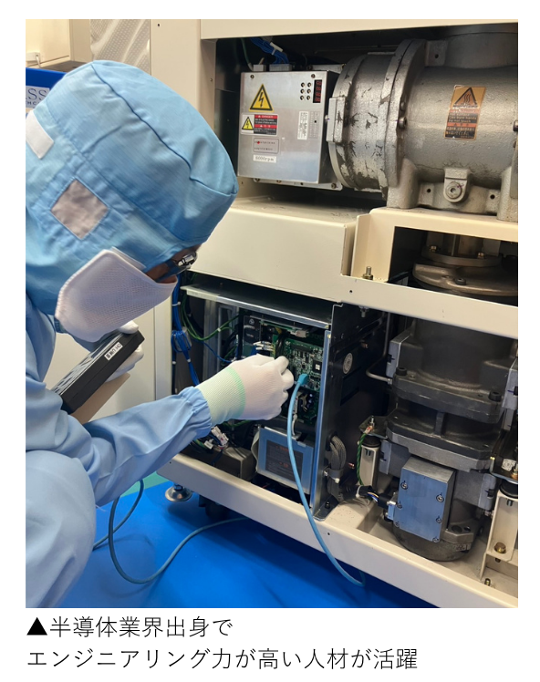 「半導体装置は単純に右から左へ販売できるようなものではありません。装置自体が大きな部屋ほどあり、危険を伴うものでもありますので、解体やチューニングには技術が必要です。当社はベンチャーではありますが、半導体大手出身で20年以上の経験を持つ50~60代の技術営業などが活躍しています。エンジニアリング力が我々の強みの1つです」(同氏)