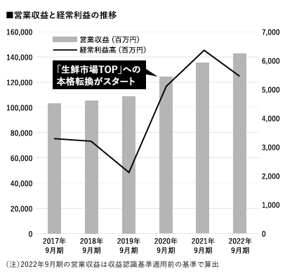 2022年9月期の業績は、営業収益1330億200万円と過去2番目となった。この期から新会計基準を適用しており、適用前と同じ基準の場合は営業収益1425億7700万円となり過去最高を更新した。