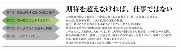 この誠実・愚直に作業に取組み、あきらめない姿勢は“KONOIKEスピリット”として今も大切に受け継がれている。水害を受けていた地域は天満橋や淀屋橋など現在の大阪の中心地も含まれ、同社は近代大阪の隆盛の礎を築く一助となった。