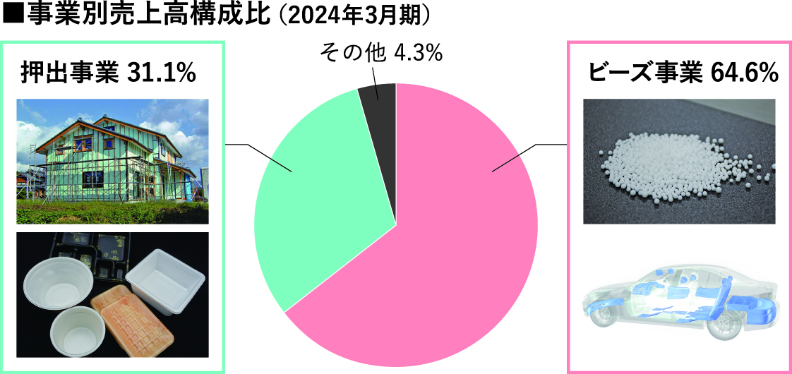 1962年創業の同社は発泡製品の専業メーカーとして、世界に先駆けて無架橋発泡ポリエチレンシートや、ビーズ法発泡ポリプロピレンの独自製品を事業化した。2000年代にはARPROの自動車部材への採用が拡大し、同製品のグローバルシェアは現在約50%を誇る。