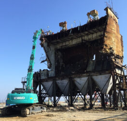 ①の解体事業は、同社の中で成長エンジンとしての位置付けで、全売上の25%を占める。建築構造物やプラント、機械設備の解体・撤去工事を請け負うほか、解体現場で発生する産業廃棄物のうち金属類は、同社の金属加工工場へ運搬、金属再生資源としてリサイクルを行う。
