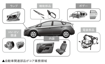 コア業務領域は「自動車用ランプ、内装、ボデー関連」「電装部品、機能部品、HV・EV関連」「シャシー部品、空調関連」の3分野。電動自動車化されても残っていく領域に技術者を集中させていることが強みだ。機械設計専門の高い技術はメーカー各社から信頼を受けている。
