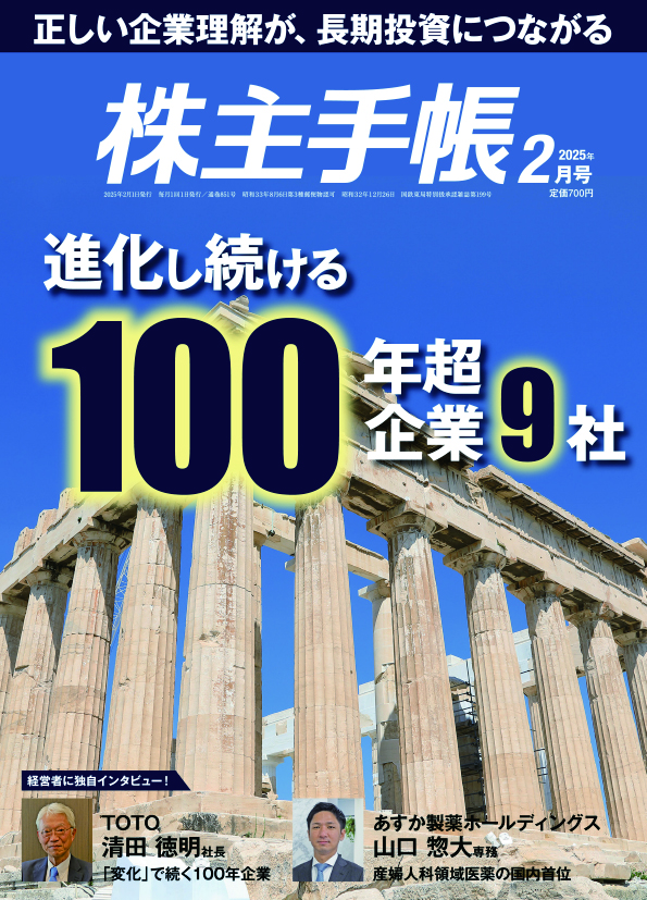 株主手帳2月号は本日発売 2025.01.17 お知らせ Tweet この記事のタイトルとURLをコピーする 【株主手帳25年2月号発売日】本日1月17日、全国書店にて発売致します! ★今月号の巻頭特集★ 今回は、2025年に100年以上となる老舗企業に着眼。長い歴史で培った基盤を基に、さらなる飛躍を遂げようとする9社を取り上げた。これまでの実績も鑑みれば、長期投資の有望対象になりそうだ。 \\ 1冊のご購入はお近くの書店にて // お得な定期購読(月刊誌)はこちらから 株主手帳オンラインの会員登録はこちらから Tweet この記事のタイトルとURLをコピーする