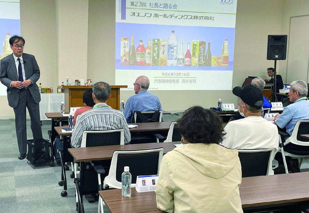「社長と語る会」は同社グループ所有の牛久シャトーや、東京工場などの施設見学のほか、西永社長による業績報告、グループの酒製品を試飲しながらの質疑応答など、同社グループの活動について、より一層理解を深めてもらおうというイベント。2016年より定期的に開催している。