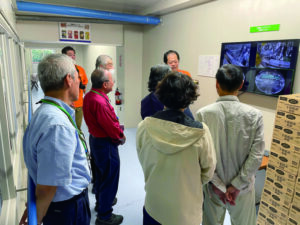 ラベル貼付など製造工程巡回 ガイド役の社員が丁寧に説明